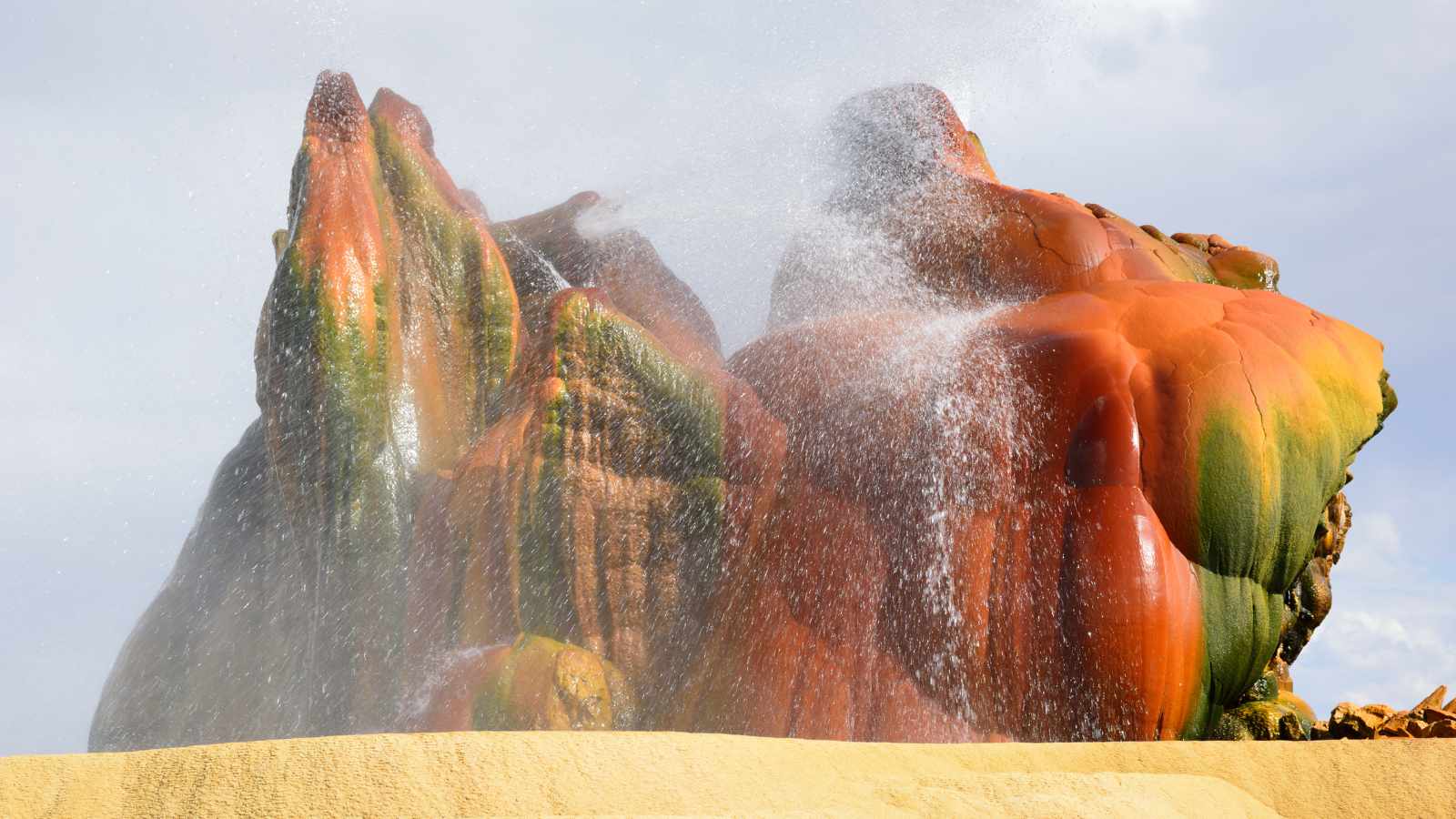 Fly Geyser in Nevada is a unique site. This geothermal geyser has grown steadily over the last century, creating an incredible formation of colorful and ever-changing terraces. The geyser’s intense colors make a remarkable landscape that will stay with you long after your visit.